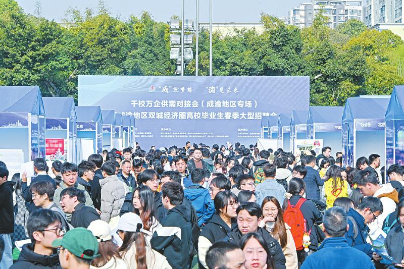 千校万企供需对接会(成渝地区专场)暨“‘成’就梦想‘渝’见未来”成渝地区双城经济圈高校毕业生春季大型招聘会现场。