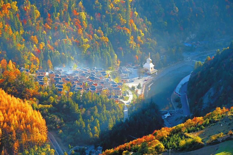 黑水县沙石多镇羊茸村藏寨掩映在彩林中。代永清 摄