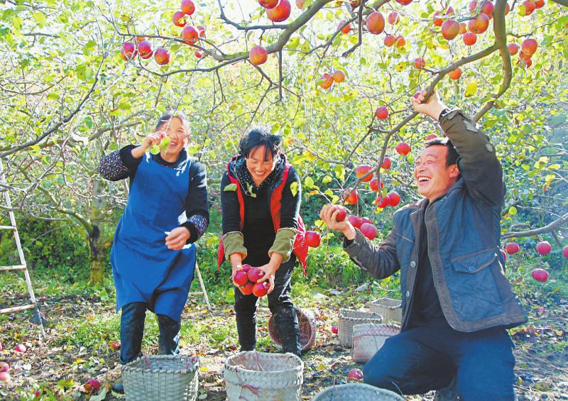 茂县南新镇安乡村村民采摘冰糖心红苹果。黄强 摄