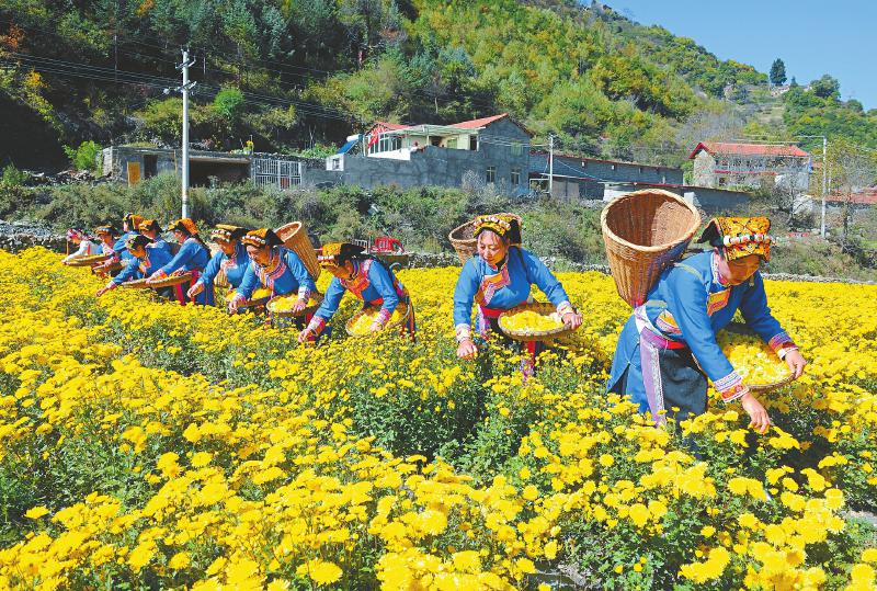 金川县卡撒乡三埂子村村民采收皇菊。代永清 摄