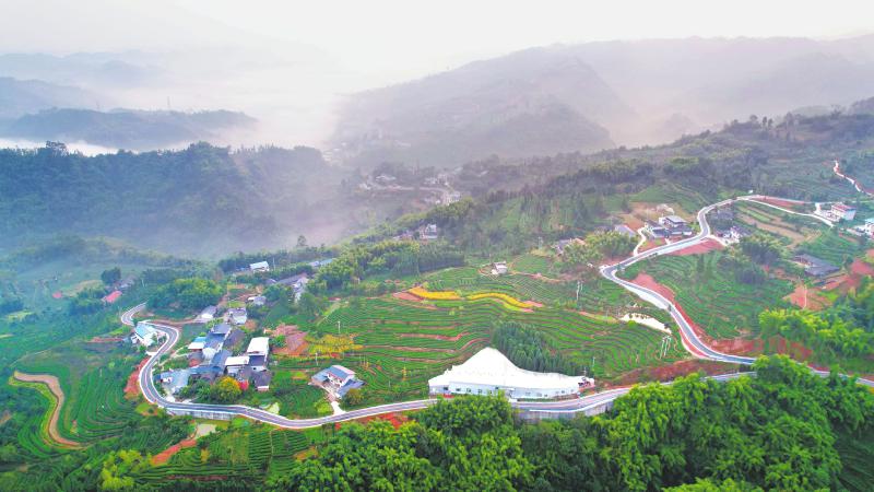 在沐川县牛郎坪茶叶现代农业园区,依托“四好农村路”建设而改建的新箭路,贯穿整个产业园,吸引了不少游客来此观景休闲。昔日路窄坑多的“黄泥路”,摇身一变成了推动乡村园林化、茶园生态化、农耕景观化、农业现代化的“致富路”。
