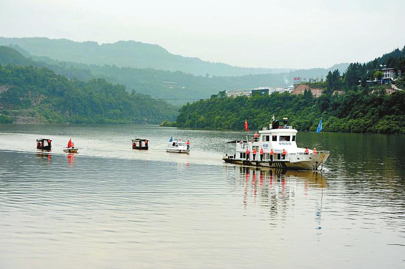 5月30日,巴中市通江县在春在码头举行水上应急救援演练。程聪摄(视觉四川)