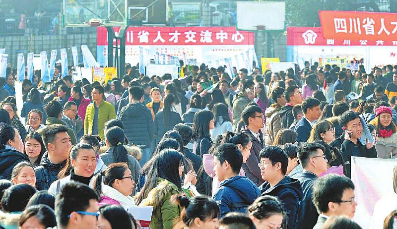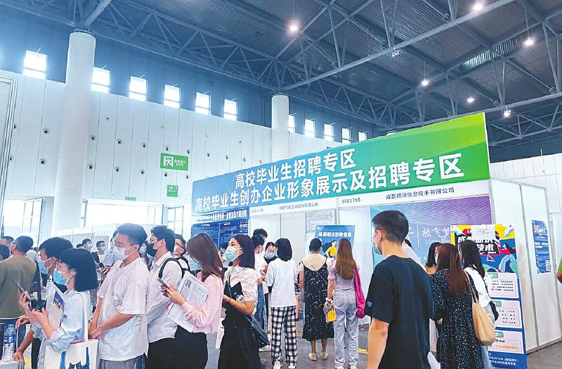 成都市在举办的大型招聘会上开设“高校毕业生招聘专区”。