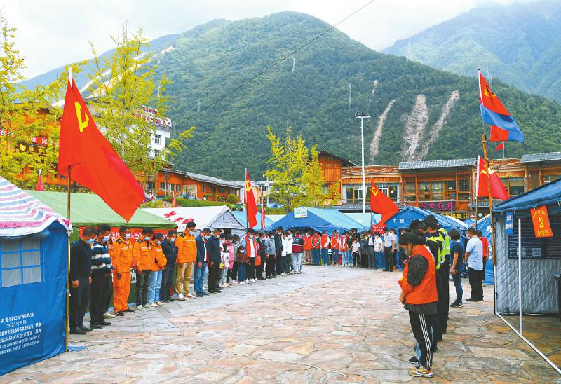 和李宁一样,家住泸定县燕子沟镇新龙门子村的高雨娇,安顿好父母后也加入志愿者队伍。在磨西镇默哀现场,高雨娇的悲伤在防空警报响起的一瞬间“决堤”,但她丝毫不怀疑“家园会重建、灾区会新生”。“未来,我们所有受灾群众还要携手并进,共同建设新的美丽家园。”