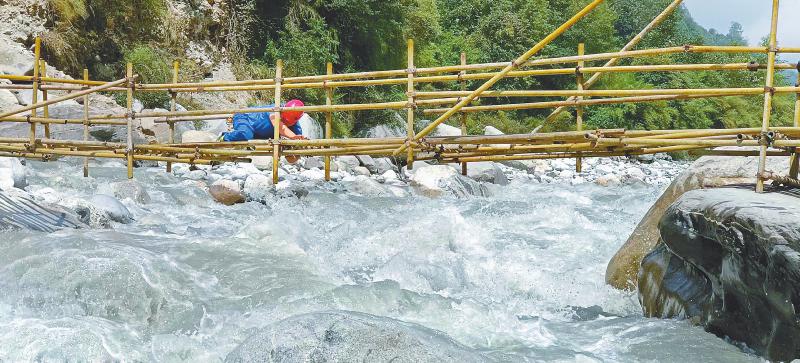 四川省青年应急志愿服务总队雷波大队队员们搭建钢架桥。图片均由受访者提供