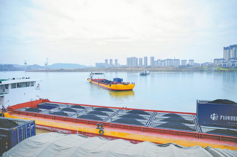 南充市南充港都京作业区,从嘉陵江上游广元运抵南充的首批2400吨陕西煤炭,经300多公里嘉陵江顺流而下抵达南充港。余中华 摄(C视觉)