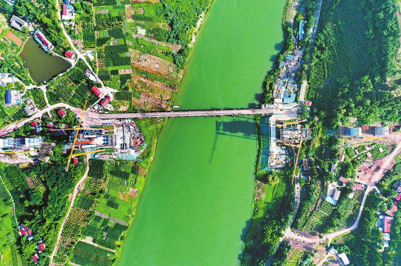 6月30日,成达万高铁资阳沱江特大桥10号主塔封顶。成达万高铁公司供图