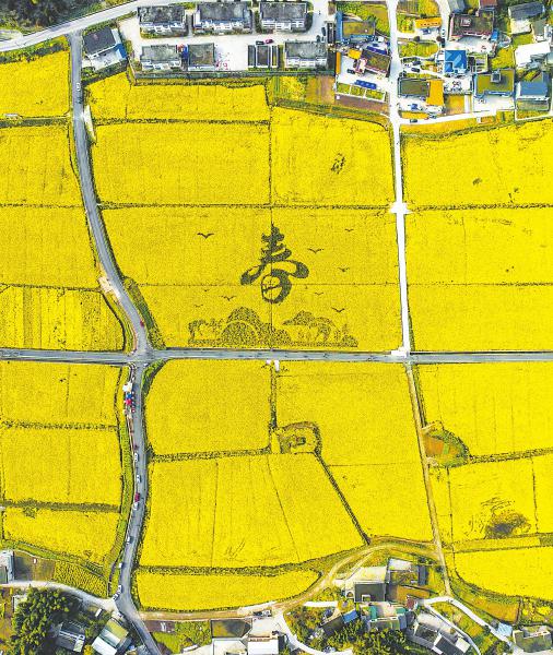 3月12日,宜宾市高县的油菜花田一片金黄,在大地上勾勒出一幅春日田园画卷。