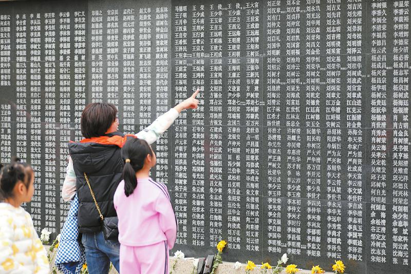 4月4日,在位于宜宾市翠屏区的宜宾市烈士陵园,家长给孩子讲革命烈士的英雄事迹。 兰锋 摄(C视觉)