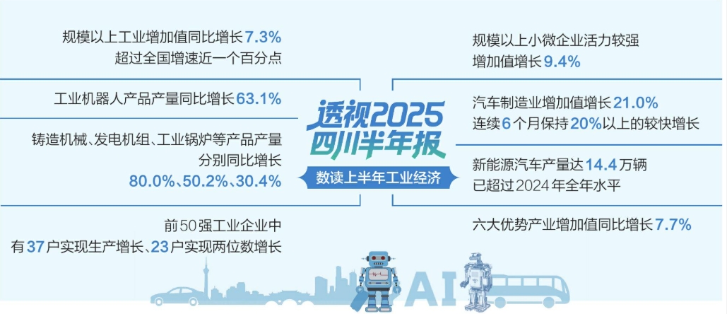 四川工业经济半年“成绩单”已出炉,规模以上工业增加值同比增长7.3%。
