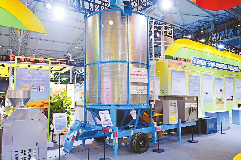 “天府菜油”行动科技创新团队项目成果——移动式谷物(油菜籽)应急干燥机、农用螺旋榨油机。