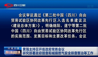 12月23日,省委副书记、省长黄强主持召开省政府第93次常务会议,研究部署自贸试验区协同改革先行区建设、政府督查、城镇燃气安全排查整治等工作。