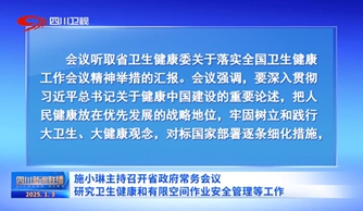 会议听取省卫生健康委关于落实全国卫生健康工作会议精神举措的汇报。会议强调,要深入贯彻习近平总书记关于健康中国建设的重要论述,把人民健康放在优先发展的战略地位,牢固树立和践行大卫生、大健康观念,对标国家部署逐条细化措施,明确任务书、时间表和路线图,协同联动、攻坚克难、创新突破,加快建设新时代更高水平健康四川。要坚持以基层为重点,加快分级诊疗体系建设,强化国家医学中心和区域医疗中心辐射带动功能,以紧密型医联体建设为抓手加快提升县域服务能力和质量,根据人口结构优化调整基层医疗卫生服务机构布局,推进远程会诊、医学影像、临床检验等“一网通享”,继续以基层为重点壮大卫生健康人才队伍,推动城乡区域医疗优质均衡发展。要坚持以公益性为导向,持续深化医药卫生体制改革,促进“三医”协同发展和治理,落实编制、价格、薪酬、监管和优化财政补助政策改革任务,巩固加强壮大公立医院,持续深化廉政、行风、作风治理。要坚持预防为主,加快构筑公共卫生服务体系,促进社会共治、医防协同、医防融合,全面提升传染病防控核心能力,加快建设国家中医药综合改革示范区,全方位全周期促进人民健康。要坚持以需求确定供给,加快健全人口发展支持和服务体系,加强“一老一幼”服务供给,支持发展综合性老年医学特色医院,大力发展托幼一体服务,扎实开展“儿科和精神卫生服务年”行动,加快健全心理健康和精神卫生服务体系。要坚持以医药科技创新为引领,积极培育原创性、颠覆性创新成果,“建圈强链”推动核医疗、生物医药、医疗器械等医药健康产业发展,培育新产品新业态新模式,发挥产业、人才等基金作用,争取更多“两重”“两新”项目落地,因地制宜推动卫生健康新质生产力发展。