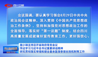 会议强调,要认真学习领会8月29日中共中央政治局会议精神,深入贯彻《中国共产党思想政治工作条例》,坚持和加强党对思想政治工作的全面领导,落实好“第一议题”制度,结合四川高质量发展成就做好宣传教育工作,更好强信心、聚民心、暖人心、筑同心。要坚持铸牢中华民族共同体意识,扎实做好发展、稳定、生态、民生等重点工作,推动民族地区高质量发展不断取得新成效,让各族群众共享改革发展成果。要深刻汲取有关事故教训,压紧压实责任,举一反三排查整治风险隐患,扎实抓好安全生产、防汛减灾、地灾防治、森林草原防灭火等工作,切实维护人民群众生命财产安全。