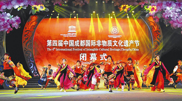 6月23日晚,第四届成都国际非遗节闭幕演出现场。