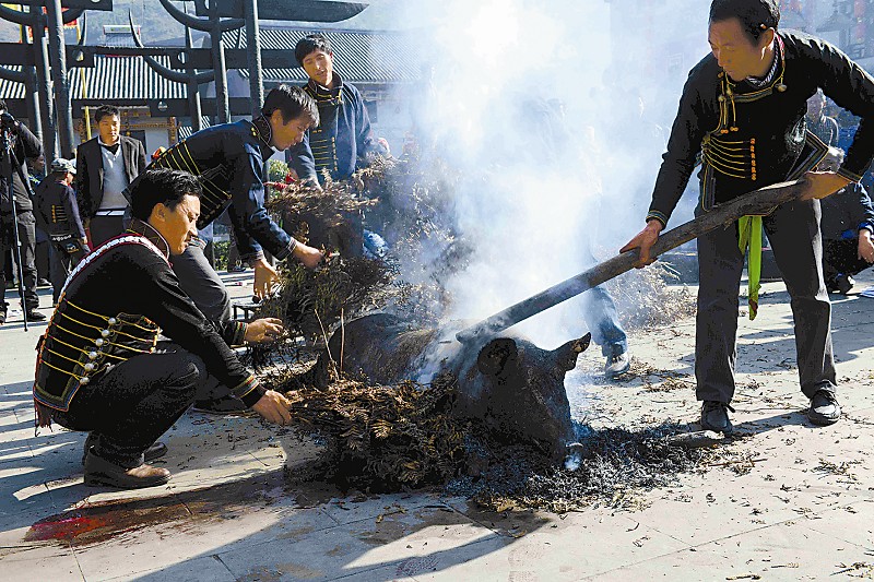 过彝历年,杀年猪是必不可少的。阿都你拉今年在赛猪膘比赛中拿了第一名,他喂了4年的猪,已经有700多斤,今年专门在过年时宰杀了,猪膘有13.5厘米厚。虽然猪膘比赛竞争激烈,但一名叫海古的村民告诉记者,眼下村民杀猪都是估摸着来,吃好多杀好多,不会造成浪费。“以前生活紧,平时没有肉吃,就等着过年这一天,把最肥、最好的猪宰了,不仅自己家狠狠吃一顿,还要走亲串友地送猪肉。”海古说,现在不同了,家家户户平时都不缺肉吃,过年杀猪会计算着杀,够吃了就行,如有富余,村民就会拿到市场上去卖。