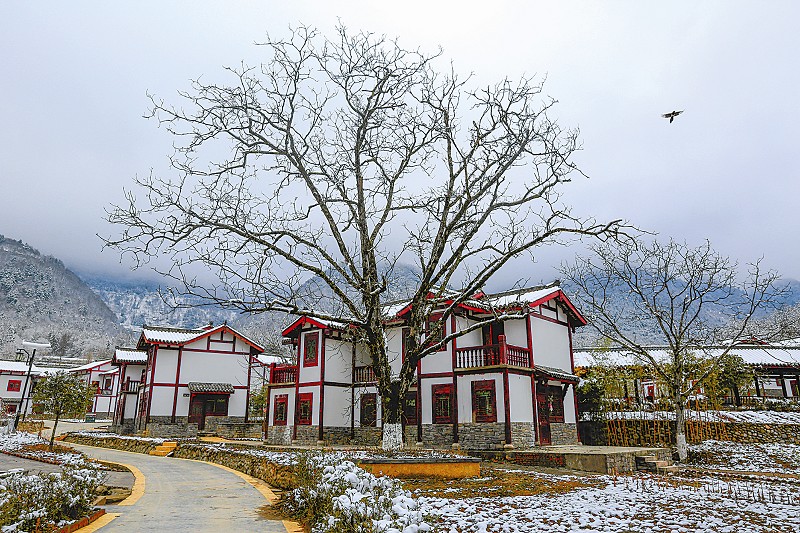 2014年,巴中建成巴山新居7682套。图为空山乡的巴山新居雪后场景。
