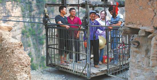 蒋世学的老伴张世春(左三)是溜索的“乘务员”