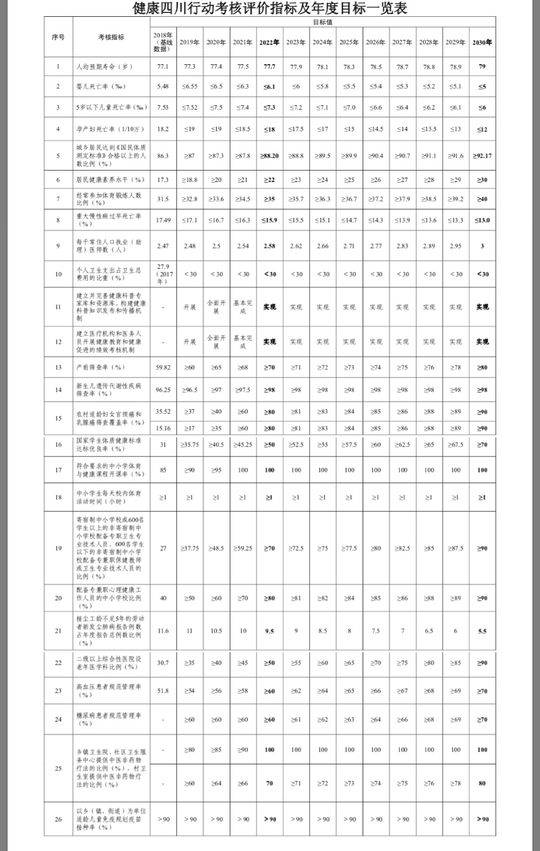 11月28日,四川省人民政府关于推进健康四川行动的实施意见(以下简称实施意见)公布,同时公开的还有健康四川行动考核评价指导方案。