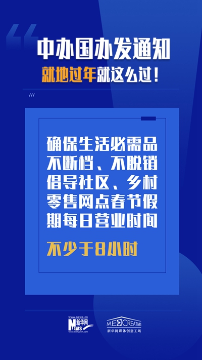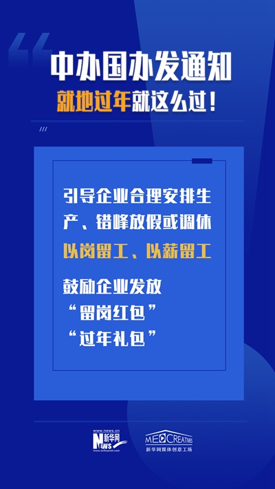 不论在哪过年,就地过年也要过好年。为积极营造就地过年良好氛围,此次两办印发的通知也特别提出:“密切关注群众就地过年的热点问题,及时回应人民群众关切。”