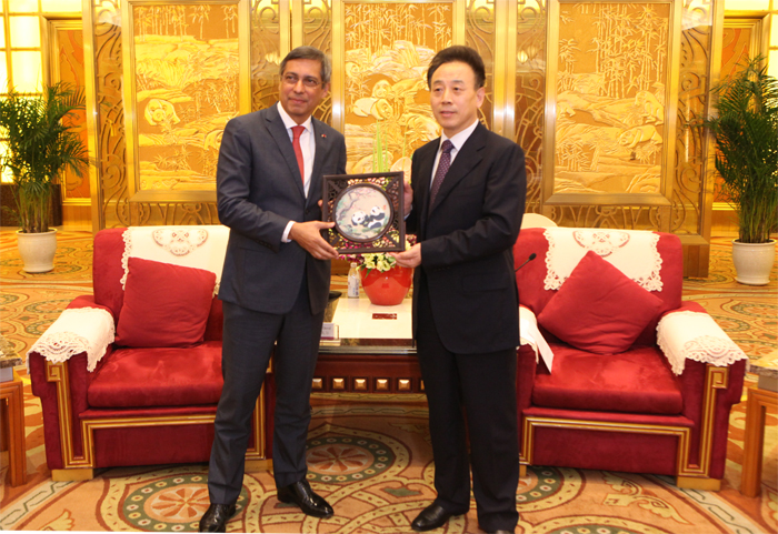中国驻毛里求斯大使李立,成都市市长唐良智,毛里求斯航空公司负责人等参加会见。