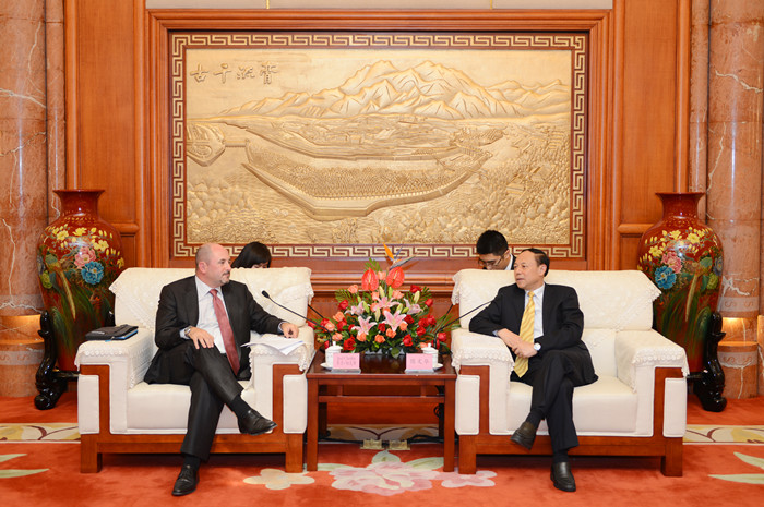 10月14日,副省长陈文华在成都会见了来访的微软公司全球公共事业部政府业务总经理乔尔·切克斯先生一行。
