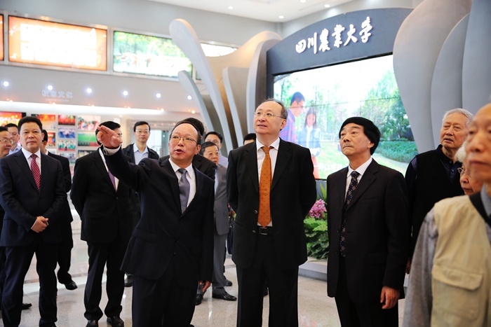 大会开始前,尹力参观了四川农业大学校史展览馆。