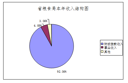 2016年省粮食局本年收入合计12997.89万元,其中:财政拨款收入11965.39万元,占92.06%;事业收入634.75万元,占4.88%;其他收入397.75万元,占3.06%。2016年本年收入合计较2015年增加437.88万元,增长3.49%,变动的主要原因是财政部门增加了局属学校教育支出的预算。