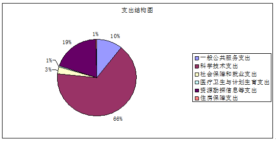 国防科工办2016年一般公共预算财政拨款支出17713.18万元,主要用于以下方面:一般公共服务支出1707.10万元,占9.64%;科学技术支出11857万元,占66.94%;社会保障和就业支出469.71万元,占2.65%;医疗卫生与计划生育支出91.54万元,占0.52%;资源勘探信息等支出3468万元,占19.58%;住房保障支出119.83万元,占0.68%;见下图: