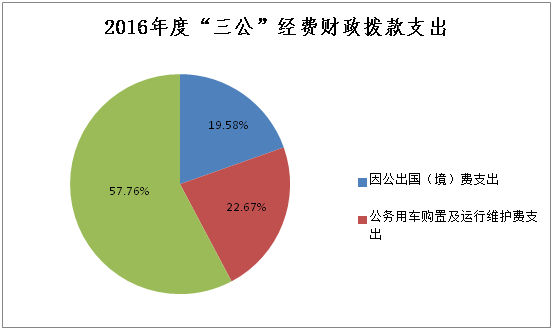 2016年度“三公”经费财政拨款支出决算中,因公出国(境)费支出决算150.24万元,占19.58%;公务用车购置及运行维护费支出决算173.93万元,占22.67%;公务接待费支出决算443.17万元,占57.75%。具体情况如下: