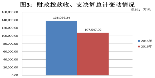 水利厅2016年度财政拨款收支总决算107,547.02万元。与2015年相比,财政拨款收、支总计各减少30,489.32万元,下降22.09%。主要原因是2016年10月,退休人员工资进入省级社保管理,财政减少了对退休人员经费拨款。