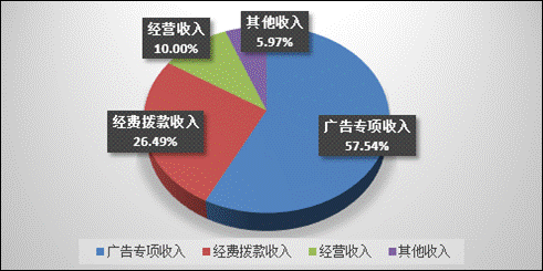 2016年四川广播电视台本年收入合计131,821.33万元,其中:财政拨款收入110,768.26万元(含广告专项收入75844.91万元),占84.03%;经营收入13,181.35万元,占10.00%;其他收入7,871.72万元,占5.97%。2016年本年收入合计较2015年减少40342.37万元,下降23.43%,变动的主要原因是:①根据《中共四川省委宣传部关于同意四川广播电视台启动四川卫视制播分离改革的批复》(川宣函[2015]50号)和《四川省新闻出版广电局关于同意四川广播电视台启动四川卫视频道实行制播分离改革的批复》(川新广函[2015]143号)要求,2016年我台卫视频道进行制播分离改革,成立“四川熊猫梦工场传媒有限公司”,公司相关收支不再纳入部门财政一般公共预算管理。②受经济下行的严峻形势、行业政策调控及新媒体冲击等不可抗力因素影响,我台纳入财政预算内管理的专项收入(广告经营收入)等受到较大影响。