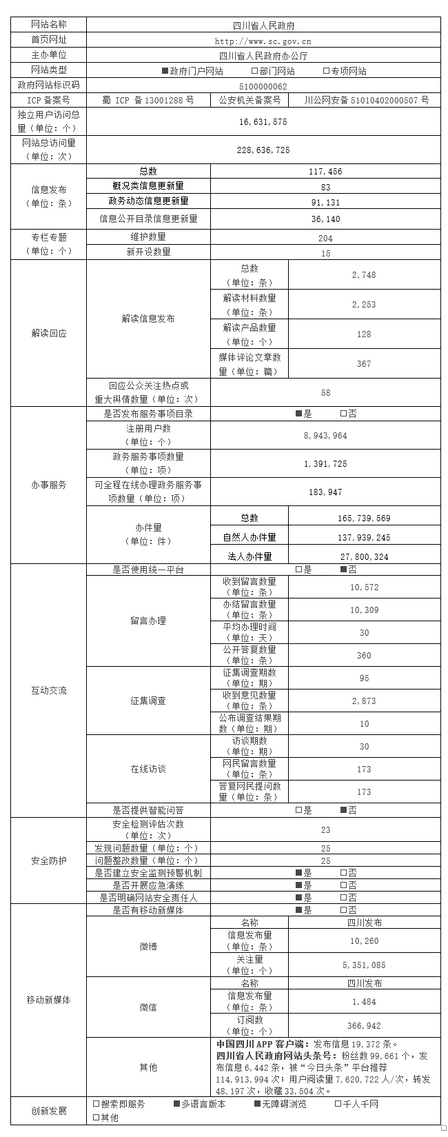 四川省人民政府网站工作年度报表(2017年度)