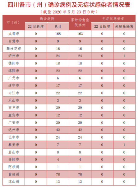 四川省新型冠状病毒肺炎疫情最新情况(5月23日发布)