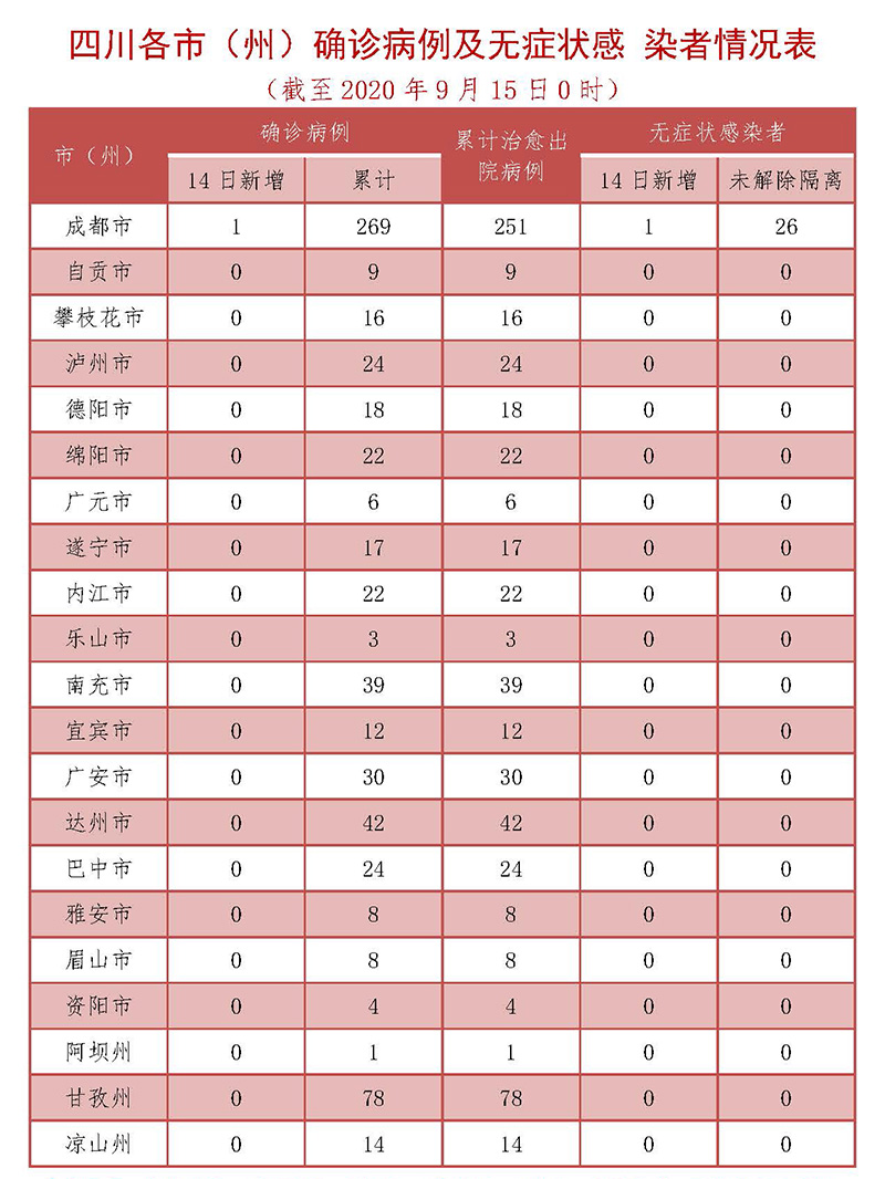 四川省新型冠状病毒肺炎疫情最新情况(9月15日发布)