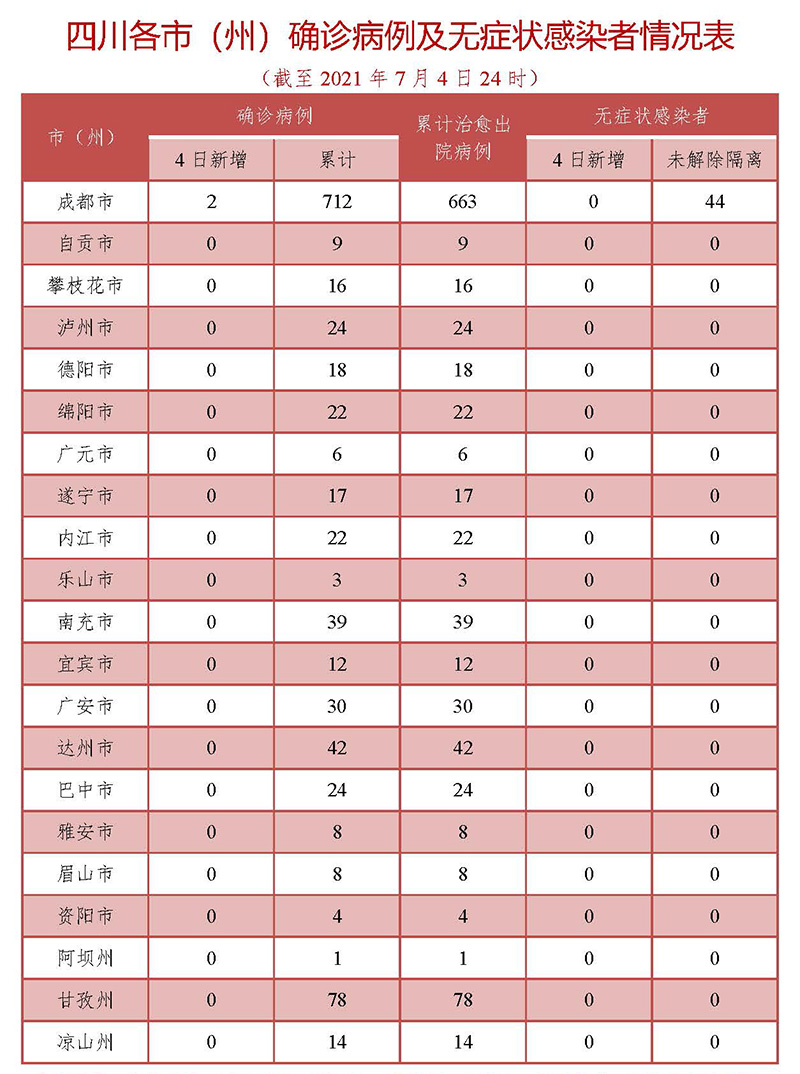 四川省新型冠状病毒肺炎疫情最新情况(7月5日发布)