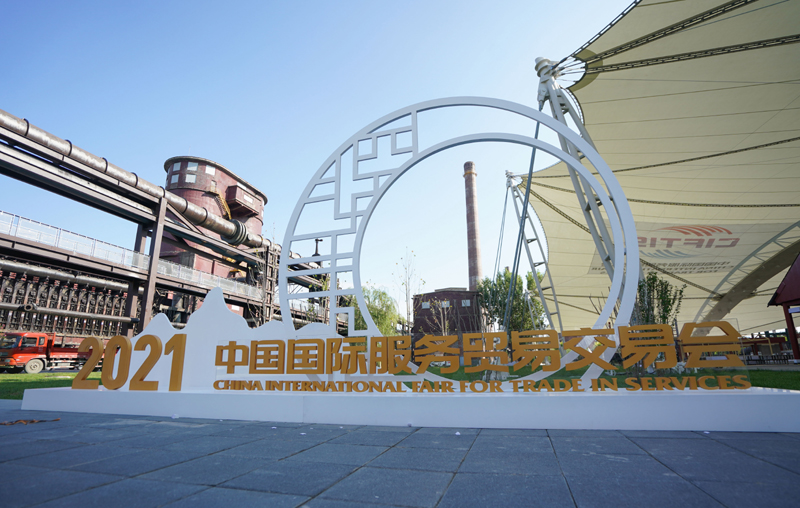 这是2021年8月31日在北京拍摄的2021年中国国际服务贸易交易会首钢园展区。新华社记者 陈晔华 摄