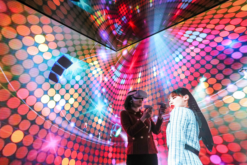 2022年3月1日,一名女子在西班牙巴塞罗那2022世界移动通信大会上通过虚拟现实技术在“元宇宙”中体验音乐会。新华社记者 郑焕松 摄