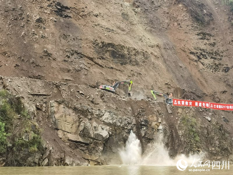 省道217郑家坪至联合村隧道段应急通道最后一段抢通。人民网 郭莹 摄
