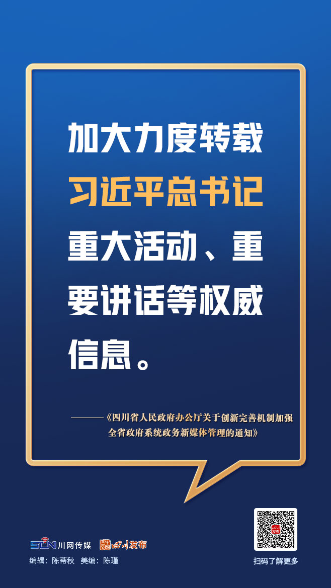 近日,《四川省人民政府办公厅关于创新完善机制加强全省政府系统政务新媒体管理的通知》(川办函〔2022〕89号)(以下简称《通知》)正式发布。《通知》对四川政务新媒体发展提出了哪些新要求?有哪些关键词?就此,记者专访了四川省政府信息公开办主要负责同志,对《通知》进行详细解读。