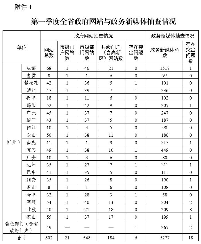 附件:1.第一季度全省政府网站与政务新媒体抽查情况