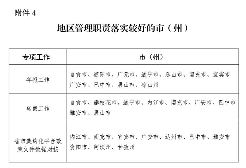 (一)政府网站。全覆盖检查各市(州)、省直部门(单位)在运行的802个政府网站,合格率达99.25%,发现存在突出问题的政府网站6个。成都、自贡、绵阳、凉山等16个市(州)的政府网站合格率较高。