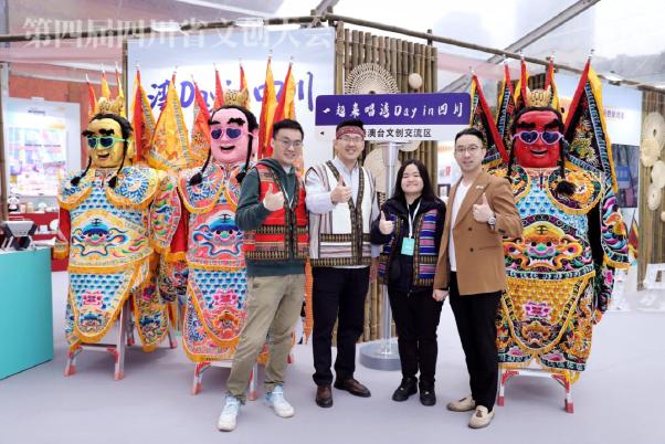 李伟国表示,为了增强“川港澳台文创交流区”吸引力,台湾团队特意穿上了高山族民族服饰,并摆放了极具台湾特色的“电音三太子”。让他没想到的是,许多设计上的小心思竟然也寻到了新的合作商机。李伟国直言,南充市文旅局看到“电音三太子”的第一眼,就觉得和南充的国家级非遗川北大木偶有不少可以互学互鉴的地方,他们非常欢迎我们台湾团队去考察南充的文旅发展。