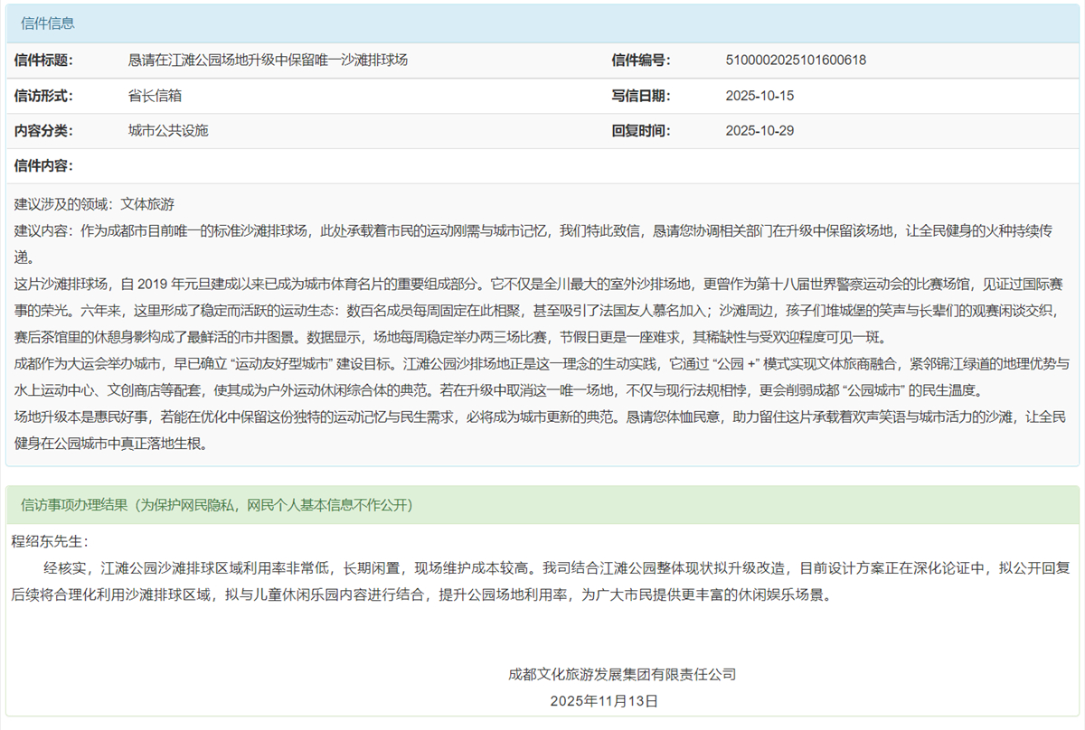 恳请在江滩公园场地升级中保留唯一沙滩排球场