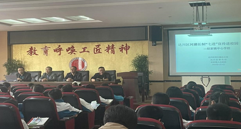 4月9日,达川区河长制办公室联合区教育局在赵家镇中心学校开展了河湖长制“七进”进学校宣传活动。