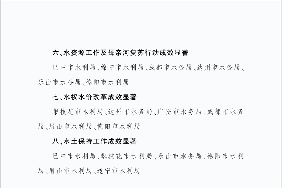 为表扬先进,树立榜样,进一步鼓舞激励,全省各级水利部门干事创业热情,经水利厅党组研究,决定对水利工作成效显著的市级水行政主管部门,进行通报表扬!其中有的全面出击,各项工作表现优秀,有的逐项发力,在不同单项工作中取得可喜成绩,快来看看下面这份名单中各市(州)都分别获得了多少奖项吧!