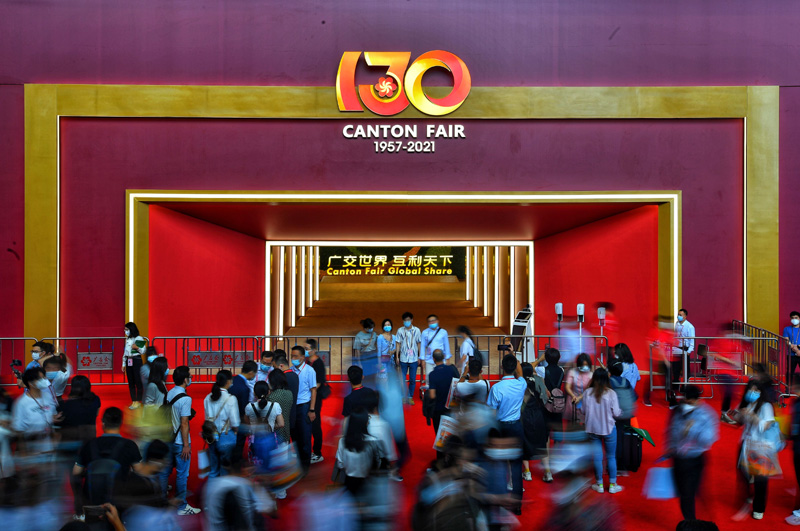 这是参展人员在广州举行的第130届中国进出口商品交易会(广交会)现场(2021年10月15日摄)。 新华社记者 刘大伟 摄
