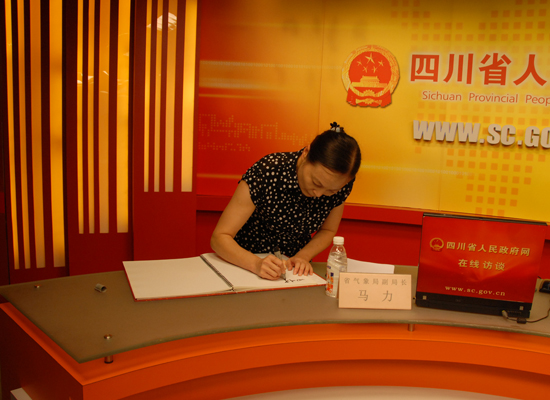 省气象局副局长马力同志接受四川省人民政府网站专访并与网友在线交流。图为马力为省政府网站留言。
