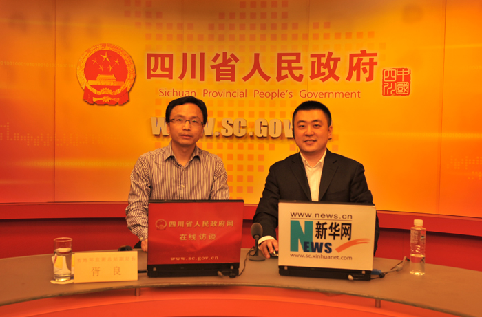 省地质环境监测总站副站长胥良同志接受四川省人民政府网站专访并与网友在线交流。图为胥良进入省政府网访谈室。