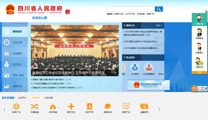 12月13日,围绕解决企业生产经营中面临的实际问题和迫切需求,省政府网正式策划推出“四川省人民政府网站企业法人版子频道”, 将行政办事指南、实时咨询、在线申报、动态查询等服务要素串联起来,将全省3800多家资质良、上规模、服务好的中介服务机构资源聚合起来,将融资贷款、技术创新、人才招聘、管理智库等第三方服务机构资源配套起来,将为企业提供更加便捷高效的“一站式”服务。